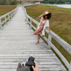 So the challenge this time was let’s shoot with our model, the incredible Catherine Richardson, in a custom bikini made just for her and our shoot by Sueno Swimwear, and we would each shoot with exactly the same camera settings, lens and lighting, right down to the pose and we had to be within arms length for the shot.